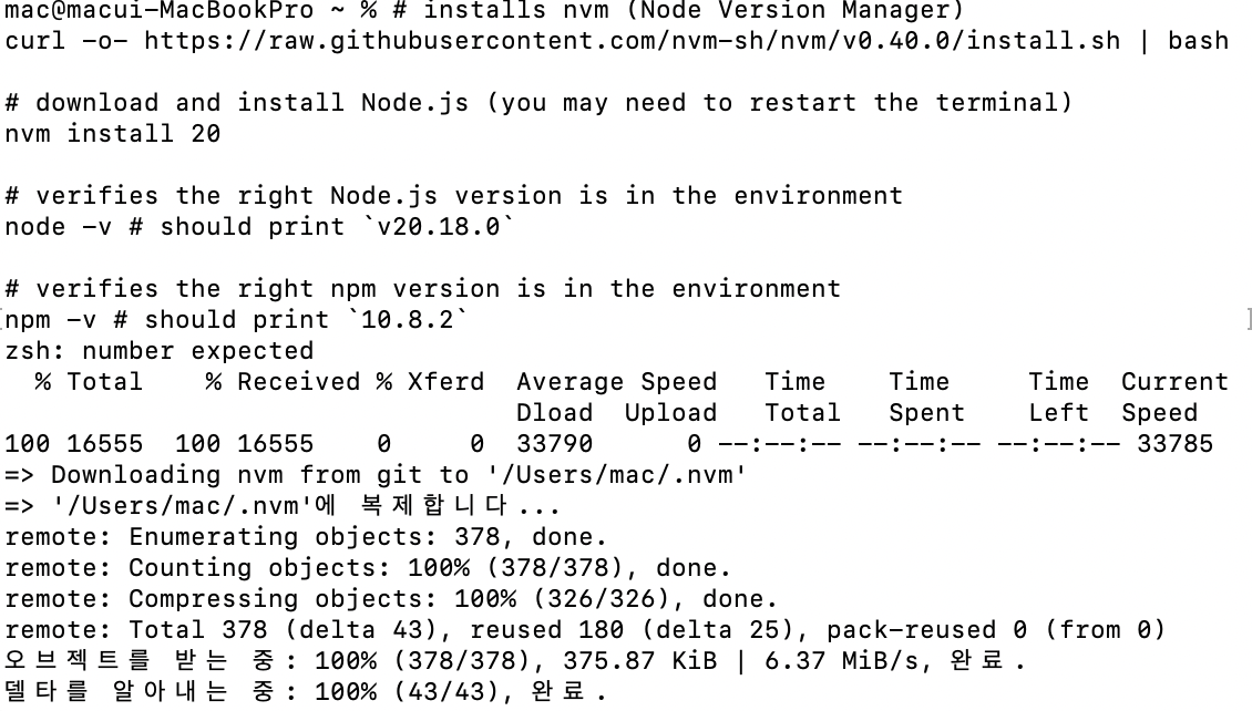 - 특정 버전 설치하기 : nvm install [버전 명]