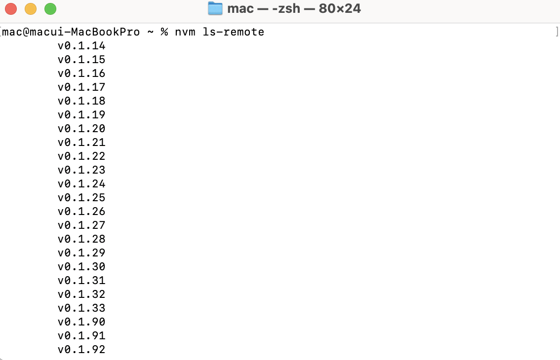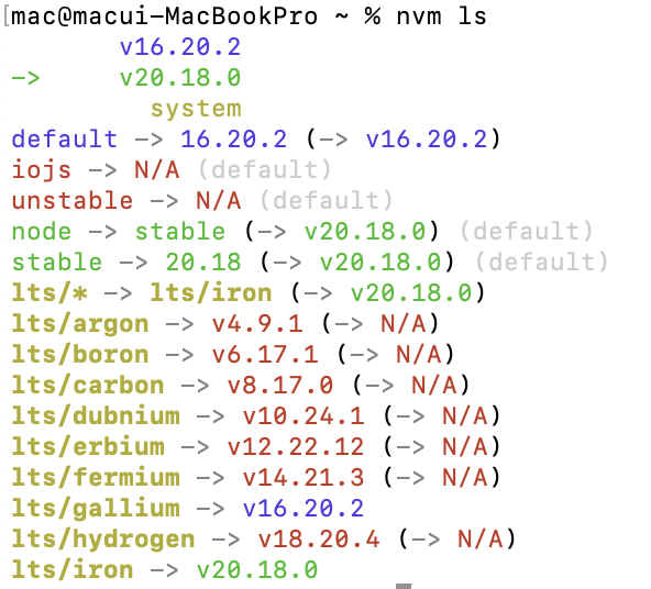 - nvm에 저장되어 있는 Node버전 보기: nvm ls