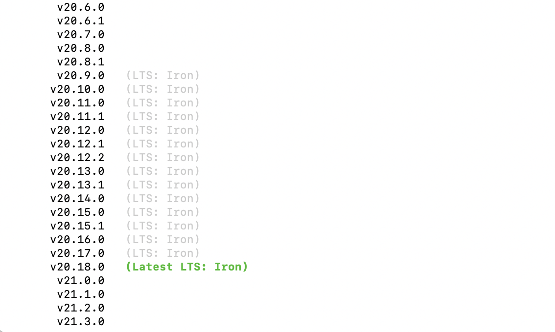 - 설치가능 Node.js 버전 : nvm ls-remote (LTS는 가장 안정적인 버전이라는 뜻)