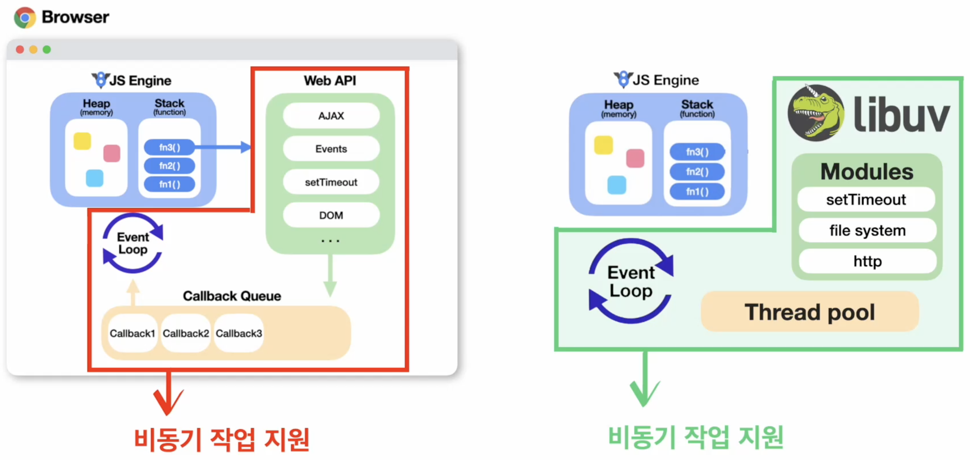 브라우저 밖에서 자바스크립트를 쓰려면? -> 자바스크립트 엔진을 브라우저 밖으로 꺼내서 쓰면 된다!