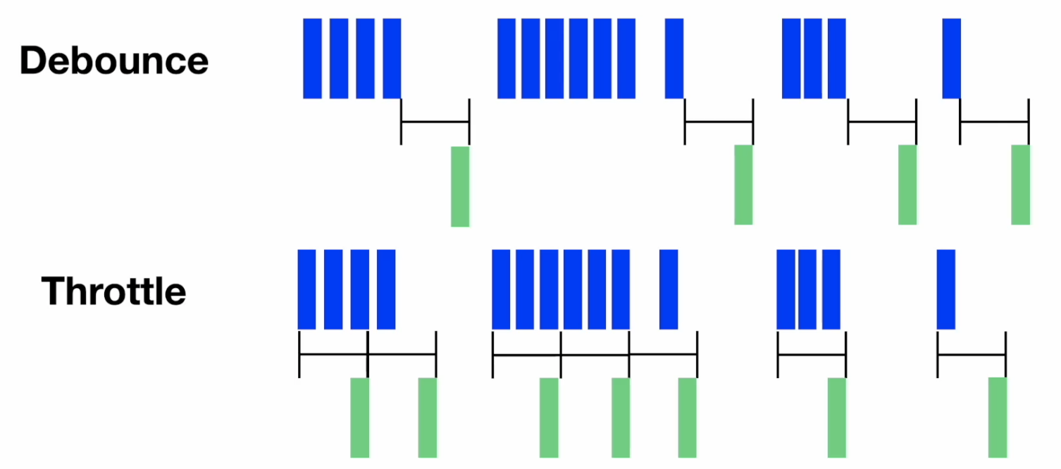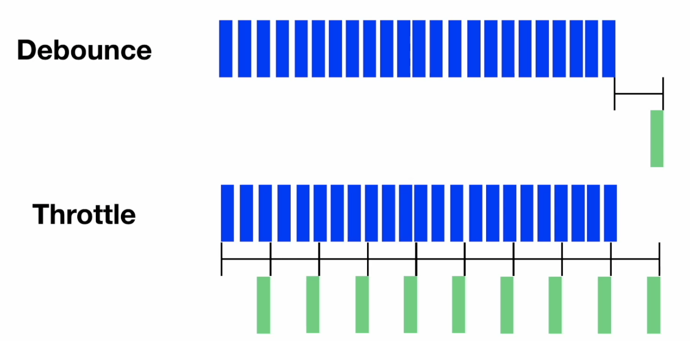 - 장점 : 이벤트가 너무 자주 호출되는 것을 막아, 부하를 줄임
