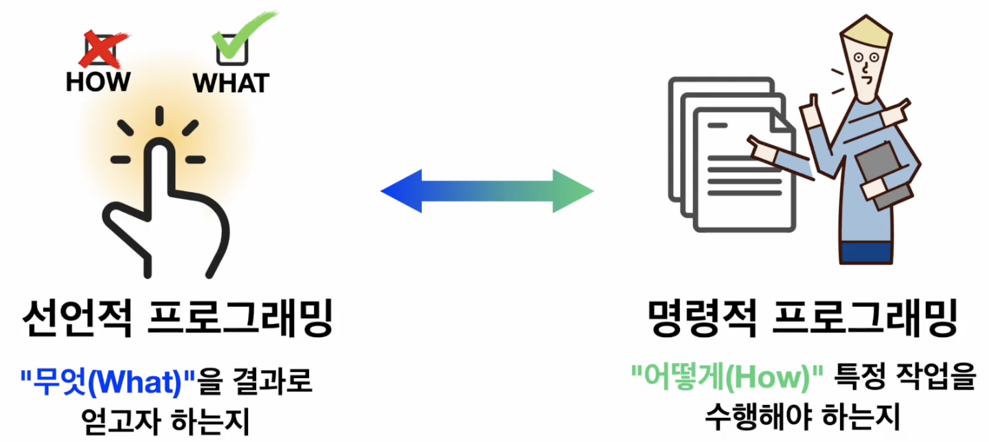 선언적 프로그래밍(React로 조작하기) <-> 명령적 프로그래밍(DOM으로 직접 조작하기)